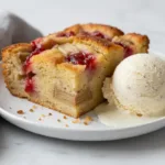 Brioche soaked in a silky custard, studded with tart rhubarb and strawberry jam—this is the bread pudding that makes you feel like you’re hosting something special without the stress.